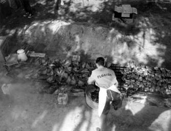 | Keywords: florida state library and archives of florida statelibraryandarchivesofflorida food traditions barbecue bbq cookout kissimmee river kissimmeeriver blackandwhite monochrome black and white Local call number: cwh1186 Title: [A cook preparing ribs and chicken for barbecue during the Kissimmee River boat-a-cade: Kissimmee River, Florida] Personal author: Monts de Oca, C. Morris. Physical descrip: 1 photoprint: b&w; 4 x 5 in. Date captured: October 1954 Series Title: Department of Commerce collection Repository: State Library and Archives of Florida, 500 S. Bronough St., Tallahassee, FL 32399-0250 USA. Contact: 850.245.6700. Archives@dos.state.fl.us Persistent URL: www.floridamemory.com/items/show/94810 Local call number: cwh1186 Title: [A cook preparing ribs and chicken for barbecue during the Kissimmee River boat-a-cade: Kissimmee River, Florida] Personal author: Monts de Oca, C. Morris. Physical descrip: 1 photoprint: b&w; 4 x 5 in. Date captured: October 1954 Series Title: Department of Commerce collection Repository: State Library and Archives of Florida, 500 S. Bronough St., Tallahassee, FL 32399-0250 USA. Contact: 850.245.6700. Archives@dos.state.fl.us Persistent URL: www.floridamemory.com/items/show/94810 |