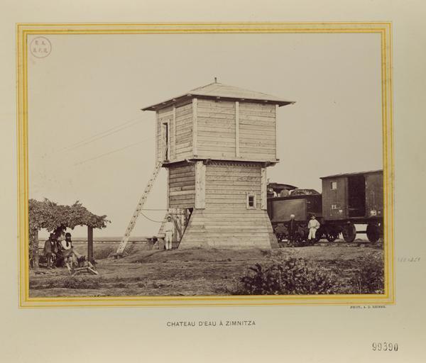 | Keywords: A. D. Reiser - Chateau d'eau à Zimnitza.jpg <br> From the album La construction des chemins de fer militaires de l'armée russe - Bucharest-Zimnicea Chateau d'eau à Zimnitza ro Din albumul Construcția căii ferate militare a armatei ruse - București-Zimnicea Castelul de apă în Zimnicea Romanian Academy Library via Europeana eu 1877 1878 Creator Andreas Reiser PD PD-old-100 Andreas Reiser Romania in the 1870s Romanian War of Independence Water towers in Romania Train stations in Romania Zimnicea |