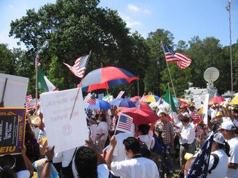Keywords: A day without immigrants - protesters, flags, news truck.jpg s shall come later own 2006-05-01 Kyle Moore Own work all rights released Public domain Great American Boycott