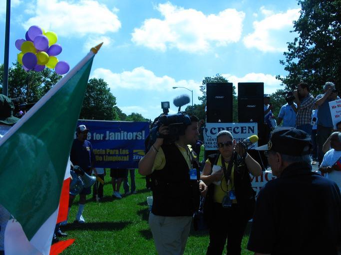 Keywords: A day without immigrants - news crew.jpg s shall come later own 2006-05-01 Kyle Moore Own work all rights released Public domain Great American Boycott