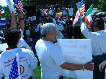 Keywords: A day without immigrants - protesters 2.jpg s shall come later own 2006-05-01 Kyle Moore Own work all rights released Public domain Great American Boycott