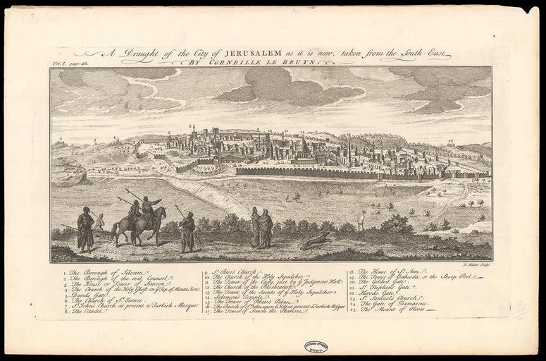 | Keywords: A draught of the city of Jerusalem as it is now taken from the South-East by Corneille Le Bruyn - J. Hulett Sculp.jpg מפה ש ירוש י http //web nli org il/sites/NLI/Hebrew/digitallibrary/Laor-Collection/Pages/maps aspx en A draught of the city of Jerusalem as it is now taken from the South-East by de-Bruyn 1737 he ציור ירוש י כפי שהיא היו מראה מכיוון דרו מזרח מאת קורנ יוס דה ברוין 1737 Dimensions 24 5x37 2 cm http //web nli org il/sites/NLI/Hebrew/digitallibrary/pages/viewer aspx presentorid NLI_MAPS_JER DocID NNL_MAPS_JER003607382 Click to enlarge http //web nli org il/sites/NLIS/en/Maps The Eran Laor Cartographic Collection National Library of Israel 2015-12-03 19 35 36 http //web nli org il/sites/NLI/English/Pages/default aspx The National Library of Israel PD-old Old maps of Jerusalem GLAM National Library of Israel Laor collection |