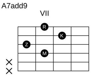 Keywords: A-Dur-7add9.svg Eigenanfertigung 2006-02-11 own assumed Red Rooster Guitar chords in standard tuning