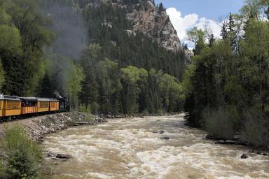 | Keywords: A Durango & Silverton Narrow Gauge Railroad (D&SNG) train follows the rushing Animas River on its mountainous journey through San Juan County, Colorado LCCN2015632963.tif 1 photograph digital tiff file color Notes Purchase; Carol M Highsmith Photography Inc ; 2015; DLC/PP-2015 068 ; Forms part of Gates Frontiers Fund Colorado Collection within the Carol M Highsmith Archive ; Credit line Gates Frontiers Fund Colorado Collection within the Carol M Highsmith Archive Library of Congress Prints and Photographs Division ; Title date and keywords based on information provided by the photographer ; The D SNG operates 45 2 miles of track between Durango and Silverton in southwest Colorado The route was originally opened in 1882 by the Denver Rio Grande Railway to transport silver and gold ore mined from the San Juan Mountains The line has run continuously since 1881 and some rolling stock dates to then It is now strictly a tourist and heritage line hauling passengers and is one of the few places in the United States that has seen continuous use of steam locomotives In March 1981 the Denver Rio Grande Western sold the line and the D SNG was formed Trains operate from Durango just 26 miles into the mountains in winter months and the full 45 miles to Silverton during warmer months 2015 Creator Carol M Highsmith Library of Congress Catalog http //lccn loc gov/2015632963 Image download https //cdn loc gov/master/pnp/highsm/32900/32948a tif Original url http //hdl loc gov/loc pnp/highsm 32948 No known restrictions on publication LOC-image highsm 32948 37 38 8354 0 N 107 41 3255 0 W alt 0_source exif_heading PD-Highsmith Images uploaded by Fæ Gates Frontiers Fund Colorado Collection within the Carol M Highsmith Archive Durango and Silverton Narrow Gauge Railroad trains Gates Frontiers Fund Colorado Collection within the Carol M Highsmith Archive Library of Congress Prints and Photographs Division Photographs by Carol M Highsmith |
