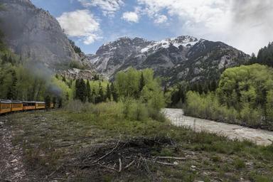 | Keywords: A Durango & Silverton Narrow Gauge Railroad (D&SNG) train follows the rushing Animas River on its mountainous journey through San Juan County, Colorado LCCN2015632967.tif 1 photograph digital tiff file color Notes Purchase; Carol M Highsmith Photography Inc ; 2015; DLC/PP-2015 068 ; Forms part of Gates Frontiers Fund Colorado Collection within the Carol M Highsmith Archive ; Credit line Gates Frontiers Fund Colorado Collection within the Carol M Highsmith Archive Library of Congress Prints and Photographs Division ; Title date and keywords based on information provided by the photographer ; The D SNG operates 45 2 miles of track between Durango and Silverton in southwest Colorado The route was originally opened in 1882 by the Denver Rio Grande Railway to transport silver and gold ore mined from the San Juan Mountains The line has run continuously since 1881 and some rolling stock dates to then It is now strictly a tourist and heritage line hauling passengers and is one of the few places in the United States that has seen continuous use of steam locomotives In March 1981 the Denver Rio Grande Western sold the line and the D SNG was formed Trains operate from Durango just 26 miles into the mountains in winter months and the full 45 miles to Silverton during warmer months 2015 Creator Carol M Highsmith Library of Congress Catalog http //lccn loc gov/2015632967 Image download https //cdn loc gov/master/pnp/highsm/32900/32952a tif Original url http //hdl loc gov/loc pnp/highsm 32952 No known restrictions on publication LOC-image highsm 32952 PD-Highsmith Images uploaded by Fæ Gates Frontiers Fund Colorado Collection within the Carol M Highsmith Archive Durango and Silverton Narrow Gauge Railroad trains Gates Frontiers Fund Colorado Collection within the Carol M Highsmith Archive Library of Congress Prints and Photographs Division Photographs by Carol M Highsmith |