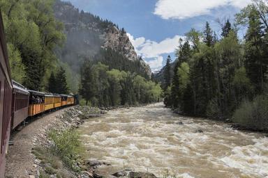 | Keywords: A Durango & Silverton Narrow Gauge Railroad (D&SNG) train follows the rushing Animas River on its mountainous journey through San Juan County, Colorado LCCN2015632964.tif 1 photograph digital tiff file color Notes Purchase; Carol M Highsmith Photography Inc ; 2015; DLC/PP-2015 068 ; Forms part of Gates Frontiers Fund Colorado Collection within the Carol M Highsmith Archive ; Credit line Gates Frontiers Fund Colorado Collection within the Carol M Highsmith Archive Library of Congress Prints and Photographs Division ; Title date and keywords based on information provided by the photographer ; The D SNG operates 45 2 miles of track between Durango and Silverton in southwest Colorado The route was originally opened in 1882 by the Denver Rio Grande Railway to transport silver and gold ore mined from the San Juan Mountains The line has run continuously since 1881 and some rolling stock dates to then It is now strictly a tourist and heritage line hauling passengers and is one of the few places in the United States that has seen continuous use of steam locomotives In March 1981 the Denver Rio Grande Western sold the line and the D SNG was formed Trains operate from Durango just 26 miles into the mountains in winter months and the full 45 miles to Silverton during warmer months 2015 Creator Carol M Highsmith Library of Congress Catalog http //lccn loc gov/2015632964 Image download https //cdn loc gov/master/pnp/highsm/32900/32949a tif Original url http //hdl loc gov/loc pnp/highsm 32949 No known restrictions on publication LOC-image highsm 32949 PD-Highsmith Images uploaded by Fæ Gates Frontiers Fund Colorado Collection within the Carol M Highsmith Archive Durango and Silverton Narrow Gauge Railroad trains Gates Frontiers Fund Colorado Collection within the Carol M Highsmith Archive Library of Congress Prints and Photographs Division Photographs by Carol M Highsmith |