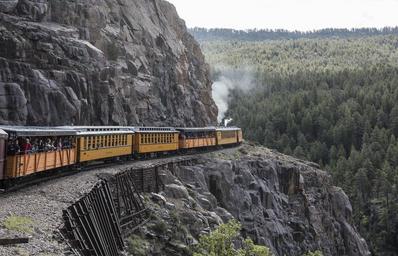 | Keywords: A Durango & Silverton Narrow Gauge Railroad (D&SNG) train proceeds along the rocky "Highline" ridge high above the Animas River Valley in La Plata County, Colorado LCCN2015632669.tif 1 photograph digital tiff file color Notes The D SNG is a narrow-gauge railroad that operates 45 2 miles of track between Durango and Silverton in southwest Colorado The route was originally opened in 1882 by the Denver Rio Grande Railway to transport silver and gold ore mined from the San Juan Mountains The line has run continuously since 1881 and some rolling stock dates to then It is now strictly a tourist and heritage line hauling passengers and is one of the few places in the United States that has seen continuous use of steam locomotives In March 1981 the Denver Rio Grande Western sold the line and the D SNG was formed Trains operate from Durango just 26 miles into the mountains in winter months and the full 45 miles to Silverton during warmer months ; Purchase; Carol M Highsmith Photography Inc ; 2015; DLC/PP-2015 068 ; Forms part of Gates Frontiers Fund Colorado Collection within the Carol M Highsmith Archive ; Credit line Gates Frontiers Fund Colorado Collection within the Carol M Highsmith Archive Library of Congress Prints and Photographs Division ; Title date and keywords based on information provided by the photographer 2015 Creator Carol M Highsmith Library of Congress Catalog http //lccn loc gov/2015632669 Image download https //cdn loc gov/master/pnp/highsm/32600/32654a tif Original url http //hdl loc gov/loc pnp/highsm 32654 No known restrictions on publication LOC-image highsm 32654 37 29 5247 0 N 107 47 5457 0 W alt 2207_source exif_heading PD-Highsmith Images uploaded by Fæ Gates Frontiers Fund Colorado Collection within the Carol M Highsmith Archive Durango and Silverton Narrow Gauge Railroad trains Gates Frontiers Fund Colorado Collection within the Carol M Highsmith Archive Library of Congress Prints and Photographs Division Photographs by Carol M Highsmith |