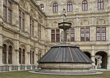 Keywords: fountain Opera House covered wintertime Vienna Austria