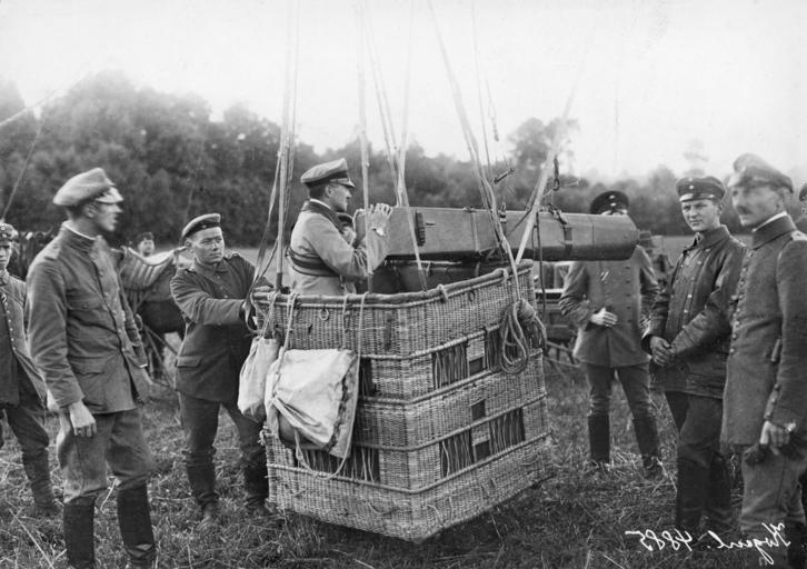 | Keywords: balloons photography landscape world war 1 worldwar1 black and white blackandwhite blackandwhite monochrome outdoor black and white ID number: H13497 Photographer: Deutsche Reichsarchiv Place: Unknown A German observation balloon fitted with a long distance camera about to ascend with one observer in the basket. The observer's escape parachute can be seen attached to the outside of the basket. Rights Info: No known copyright restrictions. This photograph is from the Australian War Memorial's collection www.awm.gov.au Persistent URL: www.awm.gov.au/collection/H13497/ ID number: H13497 Photographer: Deutsche Reichsarchiv Place: Unknown A German observation balloon fitted with a long distance camera about to ascend with one observer in the basket. The observer's escape parachute can be seen attached to the outside of the basket. Rights Info: No known copyright restrictions. This photograph is from the Australian War Memorial's collection www.awm.gov.au Persistent URL: www.awm.gov.au/collection/H13497/ |