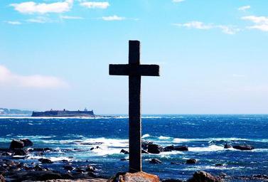 Keywords: a guarda galicia sea cruz atalaya nature landscape postal rocks horizon ocean symbol blue sky calm tribute waves