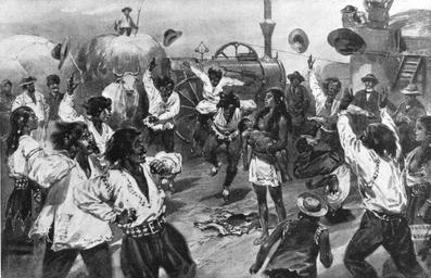 | Keywords: A gypsy cure for bear-bite - A strange scene on a Roumanian farm.jpg of a curious scene he witnessed a few days ago Threshing was going on at a farm and several families of gypsies who were travelling with performing bears were engaged to help in the work One of their children approaching too close to one of the tethered animals was bitten and brought to the place where his parents were working by his bigger companions Then arose a great outcry and the child's parents insisted on the performance of their native rites The mother stripped herself almost nude and standing in the centre of a circle formed by the members of her party accompanied them in the singing of a gypsy dirge Gradually working themselves almost to a pitch of frenzy they then began yelling and stamping like maniacs while the father of the child turned head-over-heels round the ring until he fell exhausted After twenty minutes of this the child was taken to the hospital The Illustrated London News p 535 1905-10-14 Drawn by Hermanus Willem Koekkoek based on sketches by Rook Carnegie Creator Hermanus Willem Koekkoek Creator Rook Carnegie PD-old-auto-1923 1929 1905 in Romania Romanian Roma people in art Paganism in Romania ILN 1905 Hermanus Willem Koekkoek Rook Carnegie 1905 in art |