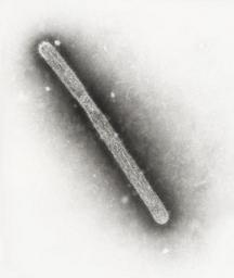 | Keywords: A (H5N1) virion, a type of bird flu virus which is a subtype of avian influenza A.jpg This transmission electron micrograph TEM taken at a magnification of 150 000x revealed the ultrastructural details of an avian influenza A H5N1 virion a type of bird flu virus which is a subtype of avian influenza A At this magnification one may note the stippled appearance of the roughened surface of the proteinaceous coat encasing the virion Photo Credit Cynthia Goldsmith/ Jackie Katz Copyright Restrictions None - This image is in the public domain and thus free of any copyright restrictions As a matter of courtesy we request that the content provider be credited and notified in any public or private usage of this image http //phil cdc gov/PHIL_Images/8036/8036_lores jpg Cynthia Goldsmith/ Jackie Katz PD-USGov H5N1 |
