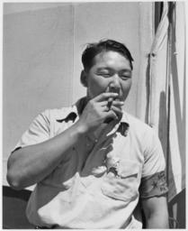 | Keywords: A Japanese man smoking a cigar during Relocation - NARA - 195541.jpg Scope and content General notes Japanese American internment in U S 195541 Local identifier Roosevelt Franklin D Franklin Delano 1882-1945 Franklin D Roosevelt Library NLFDR 4079 Albany Post Road Hyde Park NY 12538-1999 Record group Collection FDR-PHOCO Franklin D Roosevelt Library Public Domain Photographs 1882 - 1962 Record group ARC 1184 Franklin D Roosevelt Library Public Domain Photographs compiled 1882 - 1962 Series ARC 195301 File unit File unit ARC Variant control numbers NAIL Control Number NLR-PHOCO-A-7420 415 Other versions <gallery> File A_Japanese_man_smoking_a_cigar_during_Relocation_-_NARA_-_195541 tif tif File A_Japanese_man_smoking_a_cigar_during_Relocation_-_NARA_-_195541 jpg jpg </gallery> NARA-cooperation PD-USGov Men smoking cigars Japanese Americans Japanese American internment Police officers of the United States 20th-century men of the United States 20th-century black and white portrait photographs of men at half length |