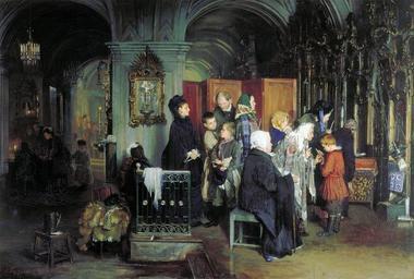 | Keywords: A Korzukhin 27.jpg en Alexey Korzukhin 1835-1894 Before confession ru Алексей Иванович Ко зухин 1835-1894 Пе ед исповедью Изоб ажён инте ье икольского военно-мо ского собо а в Санкт-Пете бу ге Location Госуда ственная Т етьяковская гале ея <br> Dimensions 108x160 см <br> Web source http //www art-catalog ru/picture php id_picture 7853 <br> Technique Oil on canvas Creator Alexey Korzukhin 1877 Institution Tretyakov Gallery credit line Genre paintings by Alexey Korzukhin 19th-century genre paintings in the Tretyakov Gallery PD-old-100 |