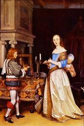 | Keywords: A Lady at her Toilet - Gerard Terborch.png Artwork Creator Gerard ter Borch II ca 1660 Oil on canvas cm 76 2 59 7 Detroit Institute of Arts http //www dia org/mobile/art/object-info aspx objectToken 618760c1-fffa-4b4b-8aae-9cc1ec600832 3fposition 3 swmobile true Detroit Institute of Arts object history Collection Pieter van Winter Amsterdam<br>1797 Louvre Paris <br> 1802 Chateau Saint Cloud France <br>1833 Collection Willems Frankfurt am Main<br>1836 Collection Lionel de Rothschild<br>Collection Sir N M Rothschild London <br> ProvenanceEvent inheritance Collection Lord Alfred Rothschild London ProvenanceEvent inheritance Collection Mrs Clive Behrens daughter of Lord Rothschild Collection Major P E C Harris son-in-law of Mrs Behrens <br>-1965 Rosenberg Stiebel dealer New York <br> ProvenanceEvent purchase 1965 Rosenberg Stiebel dealer Detroit Institute of Arts credit line Founders Society Purchase Eleanor Clay Ford Fund General Membership Fund Endowment Income Fund and Special Activities Fund accession number 65 10 Corel Professional Photos CD-ROM PD-old-100 DEFAULTSORT Borch Gerard ter 2; Lady at her Toilet Genre paintings by Gerard ter Borch II Dutch paintings in the Detroit Institute of Arts Dutch 17th-century way of life in painting Mirrors in paintings Paintings of servants People in rooms in art Woman at her toilet Mistress and maid in art Paintings of dressing tables People with candles in art Toilet services in art 17th-century oil paintings of people 17th-century paintings of carpets 1660 oil on canvas paintings in the United States |
