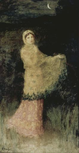 Keywords: A lady in the moonlight Félix Resurrección Hidalgo.jpg oil canvas 91 44 x 47 62cm accession number object history credit line signed lower left FRHidalgo source PD-old-auto 1913 Félix Resurrección Hidalgo