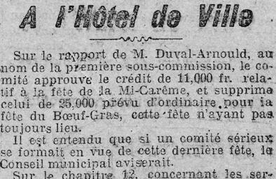 | Keywords: A l'Hôtel de Ville - 14 décembre 1900 - Le Journal - Page 2 - 6ème colonne.jpg fr Début de la rubrique A l'Hôtel de Ville dans Le Journal 14 décembre 1900 page 2 6ème colonne Suppression de la subvention de 25 000 francs de la ville de Paris prévue pour la Fête du Bœuf Gras vote de la subvention pour la Fête de la Mi-Carême Le Journal 14 décembre 1900 page 2 6ème colonne http //gallica bnf fr/ark /12148/bpt6k7623355b/f2 image r langFR Le Journal Creator Unknown 1900-12-14 Domaine public Carnaval de Paris Mi-Carême au Carnaval de Paris Mi-Carême au Carnaval de Paris 1901 1901 Promenade du Bœuf Gras au Carnaval de Paris Le Journal PD-old |