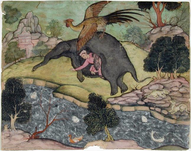 | Keywords: A man hides in an elephant skin and is carried off by a giant simurgh (6125072110).jpg en Series Title Kathasaritsagara Suite Name Kathasaritsagara Display Artist Artist Unknown Creation Date ca 1585 Display Dimensions 5 3/4 in x 7 7/16 in 14 6 cm x 18 9 cm Credit Line Edwin Binney 3rd Collection Accession Number 1990 280 Collection http //www sdmart org/art/our-collection/asian-art The San Diego Museum of Art 2001-10-02 11 49 43 https //www flickr com/photos/thesandiegomuseumofartcollection/6125072110/ Flickr en thesandiegomuseumofartcollection PD-old-100 Art of India in the San Diego Museum of Art |