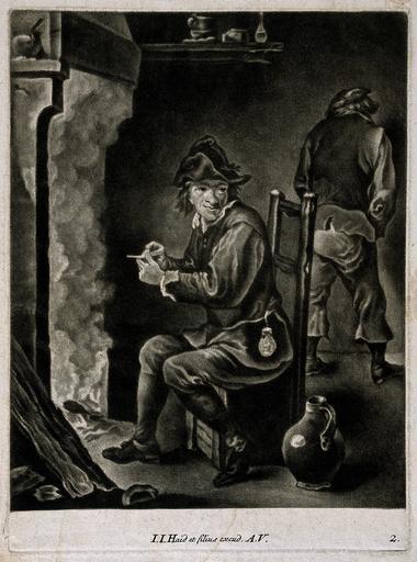 | Keywords: A man sits filling his pipe by the fire, behind a man relieves himself against the wall. Wellcome V0019050.jpg Artwork Creator David Teniers II A man sits filling his pipe by the fire behind a man relieves himself against the wall Mezzotint by I Haid et filius after D Teniers the younger <p>Iconographic Collections<br> Keywords David Teniers; Johann-Jakob Haid Library reference ICV No 19443 Photo number V0019050 Full Bibliographic Record http //catalogue wellcomelibrary org/record b1182587 object history exhibition history credit line Wellcome Images http //wellcomeimages org/indexplus/obf_images/5b/44/48191fb9c0fc51f74cb032b84a23 jpg Gallery http //wellcomeimages org/indexplus/image/V0019050 html accession number PD-old-auto-1923 1767 Images uploaded by Fæ Wellcome V0019050 jpg 18th-century etchings V0019050 jpg Works after David Teniers the Younger Works by Johann Jacob Haid Human male urination in art Etchings in the Wellcome Collection Mezzotints |
