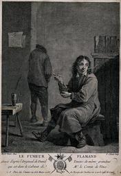 | Keywords: A man sits on a stool smoking a pipe, behind a man relieves Wellcome V0019039.jpg Artwork Creator Pierre Chenu A man sits on a stool smoking a pipe behind a man relieves himself against the wall Engraving by P Chenu c 1750 after D Teniers <p>Iconographic Collections<br> Keywords David Teniers; Pierre Chenu Library reference ICV No 19432 Photo number V0019039 Full Bibliographic Record http //catalogue wellcomelibrary org/record b1182568 object history exhibition history credit line Wellcome Images http //wellcomeimages org/indexplus/obf_images/e2/4b/5dbaee3ee7c7fe2aa7e4563df479 jpg Gallery http //wellcomeimages org/indexplus/image/V0019039 html accession number PD-old-auto-1923 1795 Images uploaded by Fæ Wellcome V0019039 jpg Files from Wellcome Images check needed V0019039 jpg Works after David Teniers the Younger Pierre Chenu Smoking men in art Human male urination in art Taverns in art |