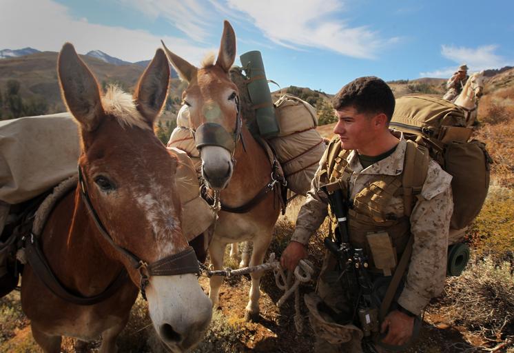 Keywords: A Marine and His Horse (8122275474).jpg Lance Cpl Tyler Langford anti-tank missileman 3rd Battalion 3rd Marine Regiment leads his pack mule during a hike at Marine Corps Mountain Warfare Training Center Bridgeport Calif Oct 13 2012 Langford used skills he learned in the Animal Packers Course taught four times a year at MCMWTC The 16-day course teaches Marines how to use animals in the region they find themselves in as a logistical tool to transport weapons ammunition food supplies or wounded Marines through terrain that tactical vehicles cannot reach U S Marine Corps photo by Lance Cpl Ali Azimi To read more about animal packers visit http //www dvidshub net/news/96472/into-mountains UIcKP2m3hYg ixzz2A9x9y8we www dvidshub net/news/96472/into-mountains UIcKP2m3hYg 2 https //www flickr com/photos/marine_corps/8122275474/ A Marine and His Horse 2012-10-13 14 34 https //www flickr com/people/40927340 N03 Marines from Arlington VA United States PD-USGov United States Marine Corps Official Page https //flickr com/photos/40927340 N03/8122275474 2016-09-03 22 51 04 United States Government Work Uncategorized 2016 November 12 |