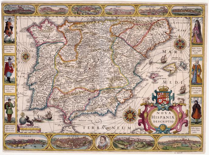 | Keywords: A Modern Map of Spain WDL7328.png Artwork ru е като Ге ха д 1512 1594 гг fr Hondius Jodocus 1563-1612 en Hondius Jodocus 1563-1612 zh 墨卡托 吉哈德斯,1512-1594 年 pt Hondius Jodocus 1563-1612 ar ميركاتور، غيرارد، 1512-1594 es Hondius Jodocus 1563-1612 ru Сов еменная ка та Испании fr Une carte moderne de l'Espagne en A Modern Map of Spain zh 西班牙现代 图 pt Um mapa moderno da Espanha ar خريطة حديثة لإسبانيا ru <em> Nova Hispaniae Descriptio </em> Сов еменная ка та Испании пе вая ка та об амленная ка тушами п едставляет собой один из п ек аснейших об азцов азвития голландской ка тог афии XVII века Ка туши использовались как дополнение к соде жащейся на ка те геог афической инфо мации а также для п идания ка те эстетичного вида а этой ка те выполненной на основе печатной пластины созданной Ге а дом е като ом 1512 1594 гг ка тог афическое изоб ажение п едставлено в ок ужении планов и видов го одов а также фигу людей в костюмах того в емени а ве хнем поле азмещены виды го одов Альхама Г анады Бильбао Бу госа Велес- алаги и Эсихи а нижнем поле показаны Лиссабон Толедо Севилья и Вальядолид В нижнем п авом углу азмещен енессансный ка туш увенчанный ге бом Ко олевства Испания с асположенными по бокам сидящими мужскими фигу ами и деко и ованный т емя ко абельными носовыми ук ашениями Изоб аженные на боковых полях ка ты т и женских и т и мужских фигу ы в самобытных костюмах п едставляют дво янское купеческое и к естьянское сословия В се едине нижнего поля находится медальон с по т етом испанского ко оля Филиппа III и надпись с его именем В левом нижнем углу изоб ажена масштабная шкала как часть пьедестала на кото ый установлена эмблема издательского дома Издатель Йодокус Хондиус 1563 1612 гг известнейший фламандский типог аф живший в Амсте даме специализи овался на п оизводстве ка т и глобусов Он был д угом Ге а да е като а и готовил к печати его атлас В 1604 г Хондиус п иоб ел пластины е като а у его наследников и выпустил новое издание атласа кото ый неизменно асп ост анялся и в XVII в п иоб ел большую популя ность Дата на ка те отсутствует но по т ет испанского ко оля Филиппа III 1598 1621 гг и дата сме ти Хондиуса позволяют п едположить что ка та была опубликована п име но в 1610 году fr <em>Nova Hispaniae Descriptio</em> Une carte moderne de l'Espagne est la première carte bordée de cartouches et l'une des avancées les plus intéressantes de la cartographie hollandaise du XVII<sup>e</sup> siècle Les cartouches étaient utilisés pour compléter les informations géographiques fournies par une carte et pour y ajouter un attrait esthétique Sur cette carte basée sur une plaque faite par Gerard Mercator 1512-1594 l'image cartographique est entourée de plans de vues de villes et de personnages en vêtements d'époque La marge supérieure inclut des vues des villes d'Alhama Grenade Bilbao Burgos Vélez-Málaga et Écija Dans la partie inférieure apparaissent Lisbonne Tolède Séville et Valladolid Dans le coin inférieur droit se trouve un cartouche de la Renaissance couronnée par les armoiries du royaume d'Espagne flanqué de deux personnages masculins assis et décoré avec trois figures de proue Sur les côtés trois personnages féminins et trois personnages masculins en vêtements distinctifs représentent la noblesse la classe commerçante et la classe paysanne Dans la marge inférieure se trouve un médaillon avec le portrait du roi Philippe III d'Espagne et une inscription portant le nom du roi Dans le coin inférieur gauche l'échelle apparaît sur un piédestal sous l'emblème de la maison d'édition L'éditeur Jodocus Hondius 1563-1612 fut un éditeur flamand reconnu qui vécut à Amsterdam et se spécialisa dans la production de cartes et de globes Il fut un ami de Gerard Mercator et publia son atlas En 1604 Hondius acheta les plaques de Mercator à ses héritiers et publia une nouvelle édition de l'atlas qui fut constamment augmentée et devint très populaire au XVII<sup>e</sup> siècle Cette carte n'est pas datée mais le portrait du roi Philippe III d'Espagne 1598-1621 et la date du décès d'Hondius suggèrent qu'elle fut publiée aux alentours de 1610 en <em>Nova Hispaniae Descriptio</em> A modern map of Spain is the first map bordered by cartouches one of the most attractive developments of 17th century Dutch cartography Cartouches were used to supplement the geographical information provided by a map as well as to add aesthetic appeal In this map which is based on a plate made by Gerard Mercator 1512 94 the cartographic