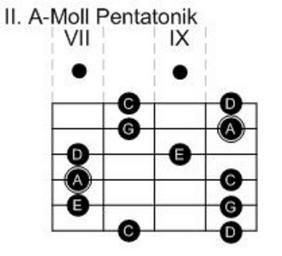 Keywords: A-Moll Pentatonik II.jpg Eigenanfertigung 2005-11-05 own assumed Red Rooster Scales on guitar