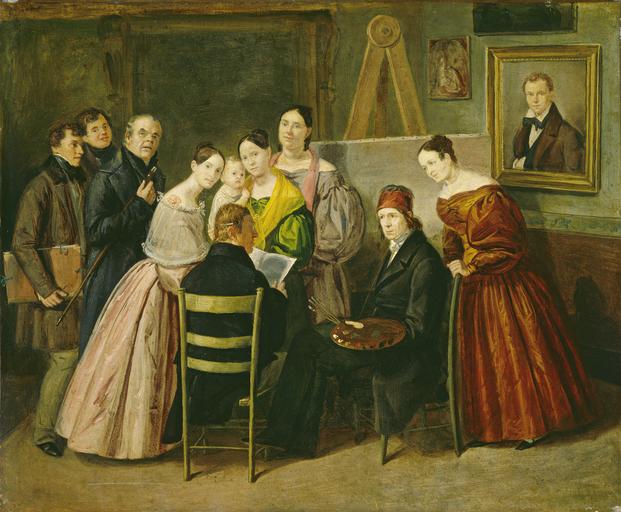 | Keywords: A Painter and Visitors in a Studio F-000545.jpg ~ 1835 oil on paper on canvas overall 35 x 43 cm 13 3/4 x 16 15/16 in institution National Gallery of Art place of discovery object history exhibition history credit line Gift of Edgar William and Bernice Chrysler Garbisch accession number 1971 83 4 place of creation http //www nga gov/content/ngaweb/Collection/art-object-page 34067 html Q20185919 PD-100 Collections of the National Gallery of Art Uploaded with pattypan | ||||