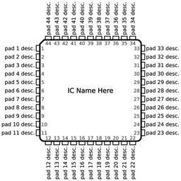 Keywords: A QFP44 Template.svg en A template for 44 pin qfp packaged ICs 2012-05-01 own Aflafla1 Uploaded with UploadWizard IC pinout diagrams