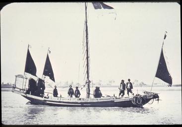 | Keywords: A river gunboat, Changde, Hunan, China, 1901 (IMP-YDS-RG008-358-0008-0040).jpg en <br> A river gunboat Changde Hunan China 1901 A river gunboat a common sight on China's waterways in Imperial days This was the gunboat that escorted the Logans on the houseboat in 1901 Note cannon on the bow and captain's cabin on the stern At night the crew was sheltered by a striped blue-and-white tent-like canopy held up by their shipped oars During the night one member of the crew manned the drum which beat out the watches during the night - a comforting if occasionally disturbing sound to travelers anchored nearby for the night ; Captions for this set of lantern slides from the papers of Oliver and Jennie Logan American Presbyterian missionaries in Hunan were provided by their daughter Elsa Subject aat general views Photographer Unidentified Filename IMP-YDS-RG008-358-0008-0040 Geographic subject Hunan; China Subject unesco Inland water transport; Rivers; Armed forces Part of collection International Mission Photography Archive ca 1860-ca 1960 Type images Part of subcollection Photographs from the Yale Divinity School Library New Haven Connecticut ca 1880-1950 Part of repository Yale Divinity Library Special Collections Repository name Yale University Divinity School Day Missions Library Format lantern slides Archival file impa_Volume289/IMP-YDS-RG008-358-0008-0040 tiff Repository address Yale University Divinity School Library 409 Prospect Street New Haven CT 06511 Part of series Oliver and Jennie Logan Papers Repository email Divinity Library yale edu Date created 1901 Publisher of the digital version University of Southern California Libraries Format aat photographs Legacy record ID impa-m66616 Access conditions http //www library yale edu/div/reproductions html Coverage date 1901 1901 date created Unidentified http //digitallibrary usc edu/cdm/ref/collection/p15799coll123/id/51558 PD-old-70-1923 Magic lantern images Images from USC Digital Library uploaded by Fæ International Mission Photography Archive ca 1860-ca 1960 |