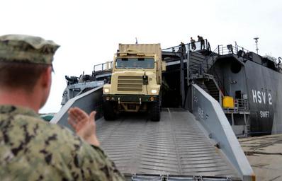 | Keywords: A Sailor directs a truck off HSV 2. (8498336922).jpg BELIZE Feb 18 2013 Engineman 1st Class Nicholas Matthews assigned to Riverine Squadron RIVRON 2 Detachment 2 guides a medium tactical vehicle replacement off High Speed Vessel HSV 2 Swift Swift is deployed to the U S 4th Fleet area of responsibility to conduct Southern Partnership Station 2013 U S Navy photo by U S Air Force Staff Sgt Ashley Hyatt/Released 130218-F-WH920-044 Join the conversation http //www facebook com/USNavy www facebook com/USNavy http //www twitter com/USNavy www twitter com/USNavy http //navylive dodlive mil navylive dodlive mil https //www flickr com/photos/usnavy/8498336922/ A Sailor directs a truck off HSV 2 2013-02-22 11 24 https //www flickr com/people/56594044 N06 Official U S Navy Page from United States of America PD-USNavy Official U S Navy Imagery https //flickr com/photos/56594044 N06/8498336922 2016-12-14 04 14 32 United States Government Work United States Navy in Belize HSV-2 Swift ship 2003 Files from the U S Navy Flickr stream Files uploaded by Reguyla |