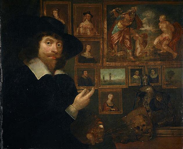 | Keywords: A self-portrait by George Jamesone.jpeg a 1642 Oil on canvas 72 00 x 87 40 cm framed 93 98 x 109 22 x 13 97 cm Institution National Gallery of Scotland object history credit line Purchased 1976 accession number PG 2361 http //www nationalgalleries org/collection/simple-search/J/5402/artist_name/George 20Jamesone/record_id/2742 other versions <gallery>GeorgeJamesone jpg</gallery> PD-old-100 George Jamesone Portrait paintings in the National Gallery of Scotland 17th-century self-portrait paintings of men 1642 1642 portrait paintings Male 17th-century men looking at viewer in art 17th-century oil portraits of men at half length 1642 Black clothing in art male 1642 Portrait paintings of men wearing black hats 1642 Portraits with paintings 1642 Self-portrait paintings holding palette and brushes 1642 |
