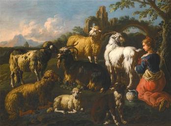 | Keywords: 'A Shepherdess with Her Flock beside a Ruined Arch' by Jakob Roos.jpg en A Shepherdess with Her Flock beside a Ruined Arch by Jakob Roos called Rosa Da Napoli 1706 oil on canvas 73 5 by 99 3 cm Sotheby's Jakob Roos called Rosa Da Napoli 1706 Jakob Roos People with sheep in art PD-old-100 |
