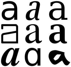 | Keywords: A-small glyphs.svg A-small glyphs svg en Different glyphs of LATIN SMALL LETTER A <br>Unicode U+0061 <br>http //www unicode org/versions/Unicode6 0 0/ch02 pdf page 12 own Wickey-nl 2011-04-07 A RytystrwtvyesyzzZzzzvbbbbunww i i Licensing Cc-zero |