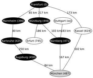 Keywords: A-Star7.svg Seventh Step of a run of the A search Algorithm on a map of Germany Created by de Benutzer Regnaron with graphviz A search algorithm 2005-11-09 own assumed Regnaron~commonswiki