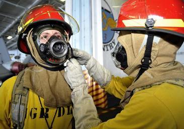 | Keywords: A U.S. Sailor helps adjust the MCU-2-P gas mask worn by Aviation Boatswain's Mate Handling 3rd Class Paul Seat, left, during a general quarters drill aboard the aircraft carrier USS Harry S. Truman (CVN 75) 090918-N-RF645-001.jpg en A U S Sailor helps adjust the MCU-2/P gas mask worn by Aviation Boatswain's Mate Handling 3rd Class Paul Seat left during a general quarters drill aboard the aircraft carrier USS Harry S Truman CVN 75 under way in the Atlantic Ocean Sept 18 2009 Truman is participating in a joint task force exercise while at sea 2009-09-18 MC3 Kilho Park http //www defenseimagery mil/imageRetrieve action guid 6f586886fb09c50fd2c34290dcb593e4615342fe t 2 Public domain photograph from defenseimagery mil http //www defenseimagery mil/imagery html guid 6f586886fb09c50fd2c34290dcb593e4615342fe 090918-N-RF645-001 2011-02-15 USS Harry S Truman CVN 75 PD-USGov-Military-Navy USS Harry S Truman CVN-75 Gas masks of the United States Images from DoD uploaded by Fæ Self-contained breathing apparatus |