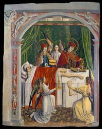 | Keywords: A verger's dream- Saints Cosmas and Damian performing a miraculous cure by transplantation of a leg. Oil painting attributed to the Master of Los Balbases, ca. 1495. WDL3251.png Artwork ru Художник Лос Балбасес Тво ческий асцвет около 1495 г fr Maître de Los Balbases En activité vers 1495 en Master of Los Balbases Flourished around 1495 zh Master of Los Balbases 盛行于 1495 年 pt Mestre de Los Balbases Auge da produtividade por volta de 1495 ar فنان لوس بالباسيس ازدهر حوالي 1495 es Maestro de Los Balbases Prosperó alrededor de 1495 ru Сон жезлоносца святые Косьма и Дамиан чудесным об азом исцеляют выполняя пе есадку ноги Ка тина маслом; авто ство п иписывается художнику Лос Балбасесу около 1495 г fr Le rêve du bedeau Saint Côme et Saint Damien procédant à une guérison miraculeuse par la transplantation d'une jambe Huile attribuée au Maître de Los Balbases vers 1495 en A verger's dream Saints Cosmas and Damian performing a miraculous cure by transplantation of a leg Oil painting attributed to the Master of Los Balbases ca 1495 zh 个教堂司事的梦想: 葛斯默和丹米安奇迹般 治愈了腿的移植 Master of Los Balbases 的油画,约 1495 年 pt Um sonho de sacristão São Cosme e Damião realizando uma cura milagrosa através do transplante de uma perna Pintura a óleo atribuída ao Mestre de Los Balbases cerca de 1495 ar حلم شماس القديسان كوزموس وداميان يقيمان بشفاء أعجوبي بواسطة زرع شاق لوحة زيتية منسوبة إلى فنان لوس بالباسيس، حوالي 1495 ru Святые Косьма и Дамиан были святыми-мучениками пе иода аннего х истианства; согласно п еданиям они безвозмездно занимались медициной и поэтому эти святые изоб ажались как сове шенные в ачеватели а данном испанском надалта ном ук ашении святые изоб ажены являющимися в видении одетые в т адиционно белые одежды в ачей для сотво ения чуда пе есадки ноги Это видение описано в книге Иакова из Во агина дати ованной 1257 годом <i>Legenda aurea</i> Золотая легенда Это видение отк ылось в Це кви святых Косьмы и Дамиана в Риме одному из це ковнослужителей кото ый ст адал заболеванием аз ушавшим ткани его ноги Однажды ему п иснилось что эти двое святых явились ему отсекли больную ногу и пе есадили на ее место ногу аф иканца уме шего незадолго до этого и похо оненного на це ковном кладбище неподалеку Когда он п оснулся он обна ужил что вместо больной ноги у него здо овая нога че ного цвета а у т упа похо оненного анее аф иканца не доставало одной ноги Заключение Помолимся же этим святым мученикам чтобы они были нам утешением и подде жкой в немощах и болезнях наших и чтобы их заслугами мы после б енной этой жизни познали благословенный и вечный небесный покой Аминь Эта ка тина ве оятно в свое в емя находилась в Це кви святых Косьмы и Дамиана в Бу госе на се еве Испании Художника написавшего эту ка тину называют Художником из Лос Балбасеса в честь близлежащего го ода где находится выполненный им алта ь в Це кви святого Стефана <br> адалта ные ук ашения; Косьма святой; Дамиан святой уме около 303 г ; Сны; ога -- Пе есадка; Ка тины маслом; Большая бе цовая кость; Пе есадка о ганов тканей fr Saint Côme et saint Damien sont des martyrs du début de la Chrétienté qui selon la légende pratiquaient gratuitement la médecine Leur représentation pour le public a donc été celle d'un idéal en matière médicale Sur ce retable espagnol les deux saints vêtus de la parure complète des médecins universitaires sont représentés dans une vision miraculeuse où ils procèdent à la transplantation d'une jambe Cette vision est décrite dans un livre écrit en 1275 par Jacques de Voragine <i>Legenda aurea</i> La légende dorée Cette vision a été reçue dans l'église de Côme et Damien à Rome par un bedeau atteint d'une maladie qui rongeait la chair de sa jambe Une nuit il rêva que les deux saints venaient couper sa jambe malade et qu'à sa place ils transplantaient celle d'un Africain mort qui venait d'être enterré dans un cimetière voisin Lorsqu'il s'éveilla le bedeau s'aperçut qu'il avait une jambe noire et saine et l'on découvrit qu'il manquait un membre au corps de l'Africain Le récit se conclut ainsi Laissez-nous désormais prier ces saints martyrs afin qu'ils nous secourent et nous aident pour tous nos maux blessures et plaies et que par leurs mérites nous puissions après cette vie goûter dans les cieux à la félicité éternelle Amen La peinture fut probablement à l'origine da