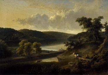 | Keywords: A View of the Flat Rock on the Schuylkill, near Philadelphia Thomas Doughty.jpg A View of the Flat Rock on the Schuylkill near Philadelphia 1827 by Thomas Doughty 1793-1856 National Gallerys Scotland Accession no NG 179 Medium Oil on canvas Size 71 20 x 101 80 cm; Credit Presented to the Royal Institute by Philip Teddyman 1828; transferred 1859 http //www nationalgalleries org/index php/collection/online_az/4 322/results/0/4829/ 1827 creator Thomas Doughty PD-old-100 Thomas Doughty | ||||