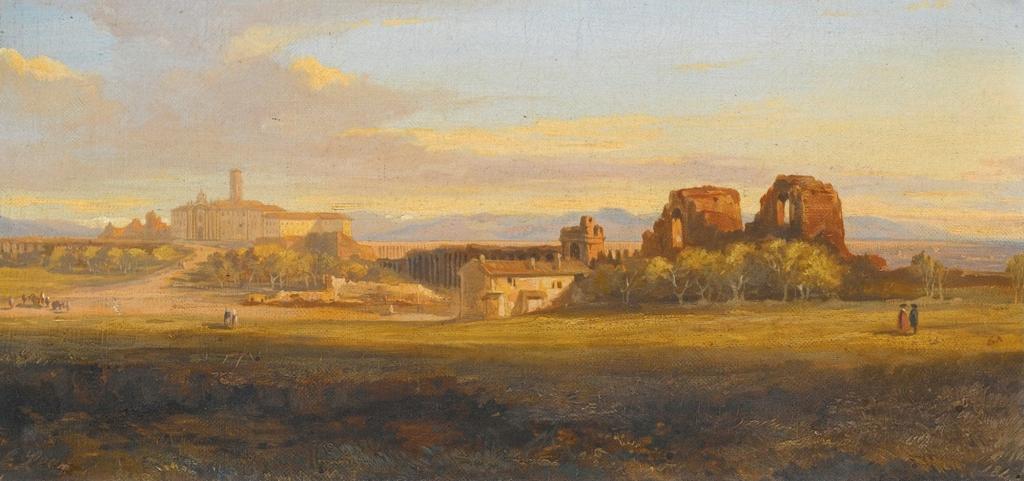 | Keywords: 'A View of the Roman Campagna, a Villa and Aqueduct in the Distance' by Edward Lear.jpg en A View of the Roman Campagna a Villa and Aqueduct in the Distance by Edward Lear 1841 oil on canvas 19 by 39 7 cm ; 7 1/2 by 15 5/8 in Sotheby's Creator Edward Lear 1841 Landscape paintings by Edward Lear Roman Campagna PD-old-100 Images from Sotheby's | ||||