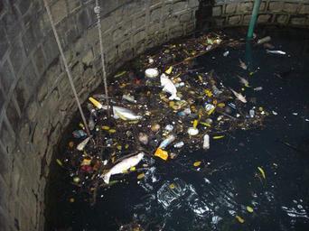 | Keywords: A 'Water Well' near Shivaji Park in Mumbai.(Friday 5-10-2012).JPG en This is one of the Oldest fresh water wells in Mumbai city that provides Tanker water to most parts of Mumbai having a water shortage Seems this well has been temporarily unusable due to waste matter and dead fish own Rudolph A furtado Friday 5-10-2012 Water wells in Maharashtra Taken with Pentax Optio E40 Cc-zero | ||||