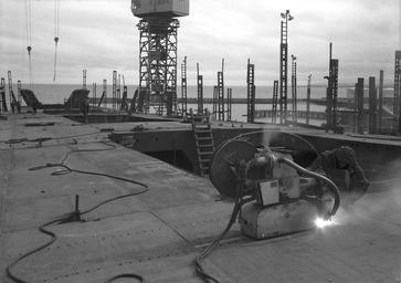 | Keywords: welding ship bartram & sons bartramsons workman shipyard south dock southdock 16 april 1956 16april1956 sunderland shipbuilding marine engineering marineengineering maritime heritage maritimeheritage industrial ladder construction machine crane chain hook panel bolts lead lamp coat hat spark flame pole water bank workers trousers shirt boots buildings wall roof post steel metal attentive unusual striking letters numbers hole debris black and white photograph blackandwhitephotograph clouds blackandwhite monochrome outdoor black and white This photograph shows a workman welding at the shipyard of Bartram & Sons Ltd, South Dock, 16 April 1956. Reference: 3396/15499F Sunderland has a remarkable history of innovation in shipbuilding and marine engineering. From the development of turret ships in the 1890s and the production of Doxford opposed piston engines after the First World War through to the designs for Liberty ships in the 1940s and SD14s in the 1960s. Sunderland has much to be proud of. Tyne & Wear Archives cares for tens of thousands of photographs in its shipbuilding collections. Most of these focus on the ships – in particular their construction, launch and sea trials. This set looks to redress the balance and to celebrate the work of the men and women who have played such a vital part in the region’s history. The images show the human side of this great story, with many relating to the world famous shipbuilding and engineering firm William Doxford & Sons Ltd. The Archives has produced a short blog to accompany these images. (Copyright) We're happy for you to share these digital images within the spirit of The Commons. Please cite 'Tyne & Wear Archives & Museums' when reusing. Certain restrictions on high quality reproductions and commercial use of the original physical version apply though; if you're unsure please email archives@twmuseums.org.uk This photograph shows a workman welding at the shipyard of Bartram & Sons Ltd, South Dock, 16 April 1956. Reference: 3396/15499F Sunderland has a remarkable history of innovation in shipbuilding and marine engineering. From the development of turret ships in the 1890s and the production of Doxford opposed piston engines after the First World War through to the designs for Liberty ships in the 1940s and SD14s in the 1960s. Sunderland has much to be proud of. Tyne & Wear Archives cares for tens of thousands of photographs in its shipbuilding collections. Most of these focus on the ships – in particular their construction, launch and sea trials. This set looks to redress the balance and to celebrate the work of the men and women who have played such a vital part in the region’s history. The images show the human side of this great story, with many relating to the world famous shipbuilding and engineering firm William Doxford & Sons Ltd. The Archives has produced a short blog to accompany these images. (Copyright) We're happy for you to share these digital images within the spirit of The Commons. Please cite 'Tyne & Wear Archives & Museums' when reusing. Certain restrictions on high quality reproductions and commercial use of the original physical version apply though; if you're unsure please email archives@twmuseums.org.uk |