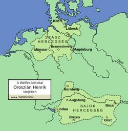 | Keywords: A Welfek birtokai Oroszlán Henrik idejében.svg A Welfek birtokai Oroszlán Henrik idejében The possession of the Guelfs in the days of Henry the Lion inkscape Image Guelf c12 jpg 2008-01-26 Daniel Tar User Dani thumb left 100px Russian translation possible Henry the Lion SVG maps in Hungarian |