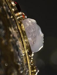 | Keywords: Aachen Domschatz Karlsbüste Chalcedony 24092016.jpg fr Visage d'enfant en calcédoine oeuvre de glyptique romaine réemployée dans le buste-reliquaire de Charlemagne Trésor de la cathédrale d'Aix-la-Chapelle 2016-09-24 11 08 44 own Vassil other versions cc-zero Karlsbüste Ancient Roman glyptics Chalcedony jewellery |