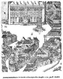 | Keywords: Aachen-Einzelbilder-1566-Blatt-7.png en View of the town hall the market place and the adjacent streets of the city of Aachen de Ansicht des Rathauses des Marktplatzes und der anstoßenden Straßen der Stadt Aachen en One of the four remaining engravings of probably originally twelve partial sheets of a city view de Einer der vier erhaltenen Kupferstiche von ursprünglich vermutlich zwölf Teilblättern einer Stadtansicht http //stadtgeschichte isl rwth-aachen de/wiki/Datei Einzelbilder-1566-Batt-7 jpg anonymus 1566 copyright expired PD-old-100 Historical views of Aachen |