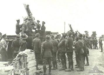 | Keywords: AAGunMorbecque29August1917-2.jpeg Australian troops watching anti aircraft guns firing at a German airfield near Morbecque Note the ammunition boxes in left foreground <br>Comment The gun appears to be a 13 pounder 9 cwt <br>It is part of the same shoot as Image 13pdr9cwtAntiAircraftGunMorbecque31August1917 jpg E00756 1917-08-29 Unknown Australian Official Photographer Copyright clear PD-AustraliaGov QF 13 pounder 9 cwt Third Battle of Ypres World War I forces of Australia in France Morbecque Morbecque Black and white photographs |