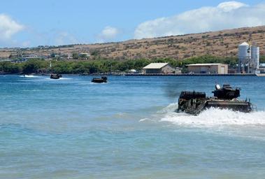 | Keywords: AAV launch 140723-N-HU377-250.jpg en Amphibious assault vehicles assigned to Combat Assault Company 3rd Amphibious Assault Unit 3rd Marine Regiment launch from the beach transporting a unit of Marines to the amphibious assault ship USS Peleliu while underway for Rim of the Pacific Exercise 2014 Twenty-two nations 49 ships and six submarines more than 200 aircraft and 25 000 personnel are participating in RIMPAC exercise from June 26 to Aug 1 in and around the Hawaiian Islands and Southern California The world's largest international maritime exercise RIMPAC provides a unique training opportunity that helps participants foster and sustain the cooperative relationships that are critical to ensuring the safety of sea lanes and security on the world's oceans RIMPAC 2014 is the 24th exercise in the series that began in 1971 2014-07-23 LHA 5 https //www dvidshub net/image/1470522 140723-N-HU377-250 2014-07-29 06 00 KAWAIHAE HARBOR HI US PD-USGov-Military-Navy USS Peleliu LHA-5 RIMPAC 2014 Images from DoD uploaded by Fæ |