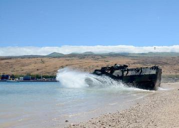 | Keywords: AAV launch 140723-N-HU377-156.jpg en A U S Marine amphibious assault vehicle assigned to Combat Assault Company 3rd Amphibious Assault Unit 3rd Marine Regiment launches from the beach transporting a unit of Marines to the amphibious assault ship USS Peleliu while underway for Rim of the Pacific Exercise 2014 Twenty-two nations 49 ships and six submarines more than 200 aircraft and 25 000 personnel are participating in RIMPAC exercise from June 26 to Aug 1 in and around the Hawaiian Islands and Southern California The world's largest international maritime exercise RIMPAC provides a unique training opportunity that helps participants foster and sustain the cooperative relationships that are critical to ensuring the safety of sea lanes and security on the world's oceans RIMPAC 2014 is the 24th exercise in the series that began in 1971 2014-07-23 LHA 5 https //www dvidshub net/image/1470561 140723-N-HU377-156 2014-07-29 06 00 KAWAIHAE HARBOR HI US PD-USGov-Military-Navy USS Peleliu LHA-5 RIMPAC 2014 Images from DoD uploaded by Fæ |