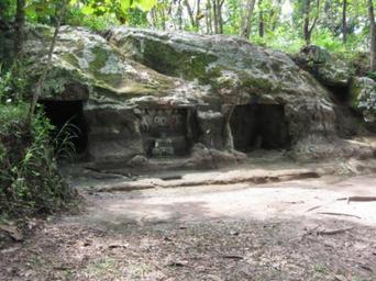 Keywords: Abang09 4 2.jpg Candi Abang 登り口にある遺跡 岩上部切り込みはAbang山頂景色に似ている prambanan jogja 2009-04-21 hikaru inoue PD Candi Abang Stone sculptures in Indonesia