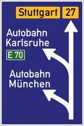 Keywords: Abb. 16 - Vorwegweiser mit Kennzeichnung einer Europastraße, Autobahn-Normalien 1958.svg de Abb 14 Vorwegweiser Für das Blau wurde damals das RAL-Farbtonregister 840 R gewählt Der dort verzeichnete Ton ist in der Abbildung wiedergegeben Das Zeichen wurde im September 1958 folgendermaßen vorgestellt An den Zubringerstraßen und deren Einfahrten zu den Autobahnen sollen die auf den Autobahnen durchlaufenden Europastraßen gleichfalls kenntlich gemacht werden Desgleichen sollen Europastraßen die auf anderen Straßen durchlaufen auf den Autobahnen an den Knotenpunkten wo sie kreuzen ein- oder ausmünden bekanntgegeben werden Abbildung 16 Quelle Fritz Heller Neue Ausführungen von Markierungen und Verkehrszeichen auf den Autobahnen in der Bundesrepublik Deutschland In Die Autostrasse 4 1959 S  71-72 Abbildung mit Größenangaben own Mediatus 2015-09-15 v Cc-zero PD-VzKat Diagrams of direction road signs of Germany Diagrams of motorway road signs of Germany 1958 set Diagrams of motorway road signs of Germany