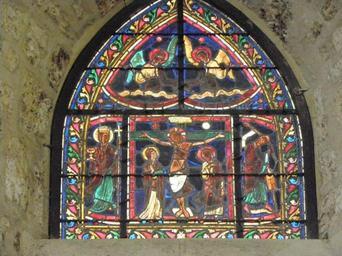 | Keywords: Abbatiale Saint-Pierre d'Orbais-l'Abbaye (51) Verrière du Calvaire.jpg le Christ en croix entre la Vierge et St-Jean De part et d'autre l'Église et la Synagogue Au sommet deux anges own GO69 01/12/2010; pour le vitrail vers 1215 IM51000599 verrière Cc-zero Vitraux de l'abbatiale Saint-Pierre d'Orbais-l'Abbaye Taken with Olympus SP-590UZ | ||||